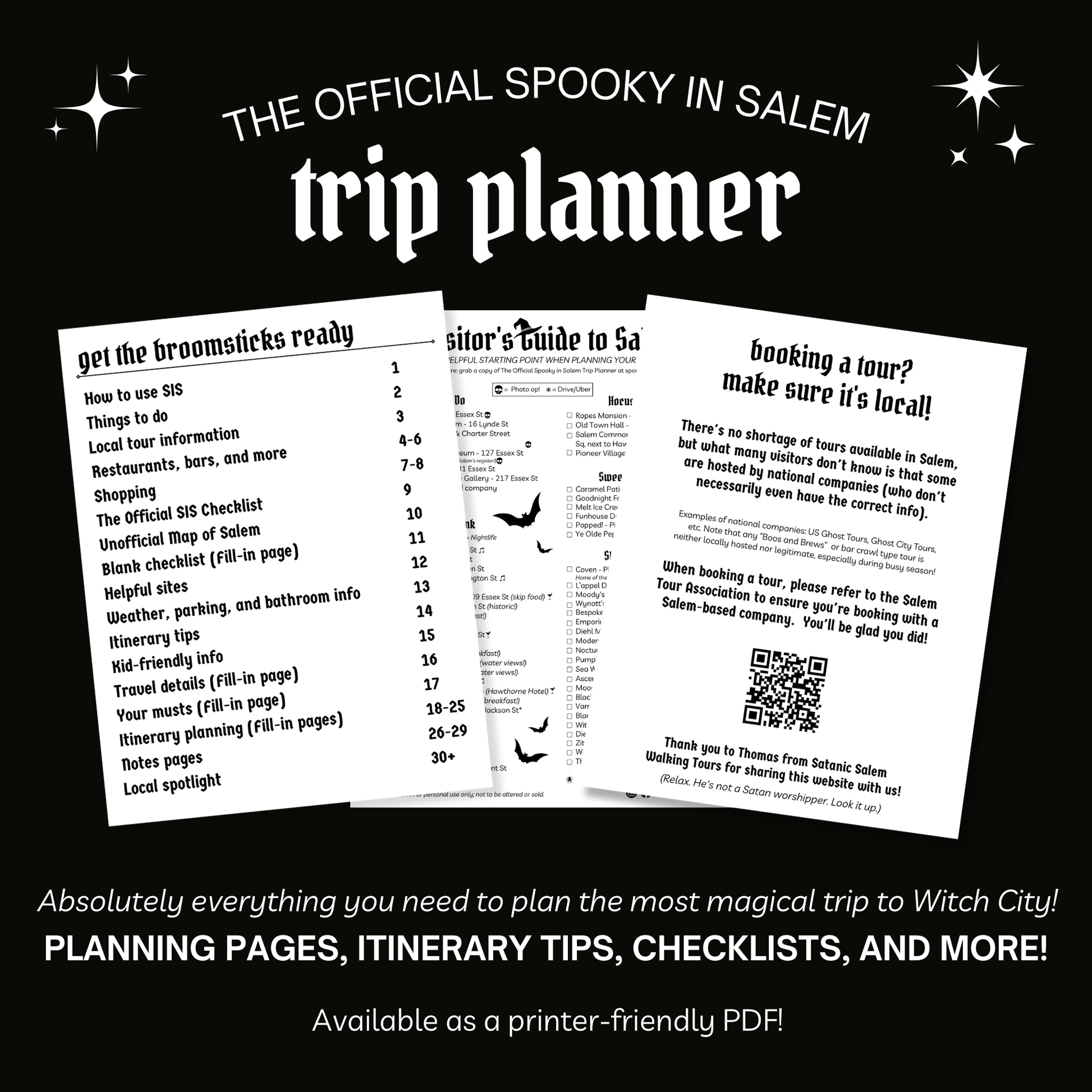 This planner was created with love, care, attention to detail, and the desire to help as many people enjoy their trips to Salem as possible. It is the intellectual property of Spooky in Salem with all rights reserved.